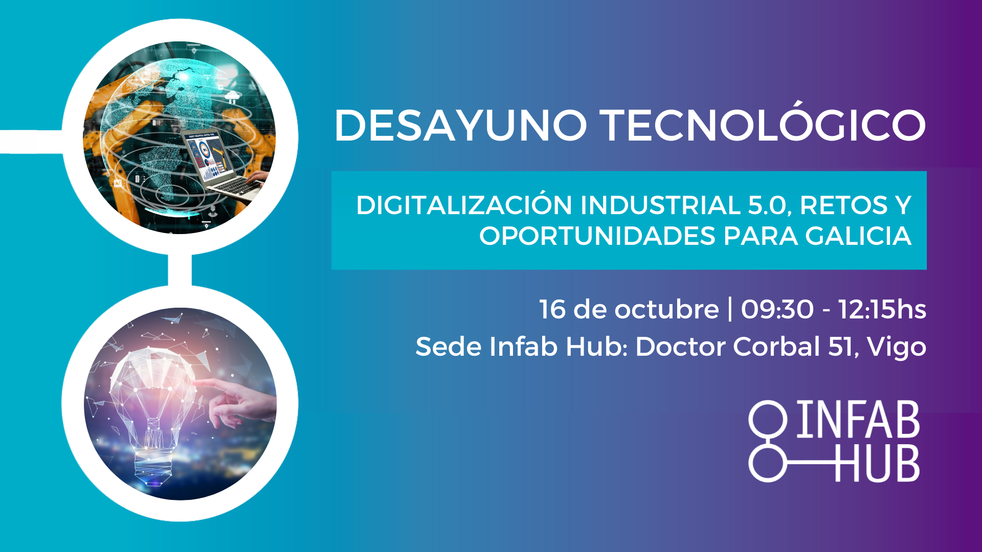 El próximo jueves 16 de octubre a las 09:30 horas, el Digital Innovation Hub, Infab Hub, organiza en Vigo el Desayuno Tecnológico: Digitalización Industrial 5.0, retos y oportunidades para Galicia. El encuentro tendrá lugar en la sede del Infab Hub (Doctor Corbal, 51, Vigo).
